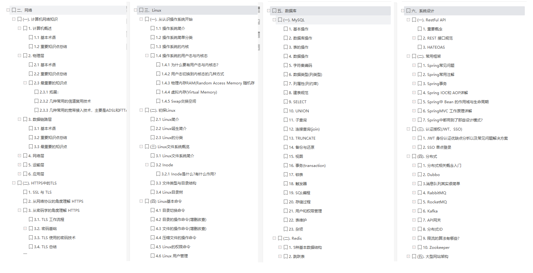 本文档详细涵盖Java基础、并发编程、JVM、网络知识、Linux操作、数据结构、数据库技术、系统设计、工具使用及面试攻略。助力技术升级,备战秋招大厂挑战。