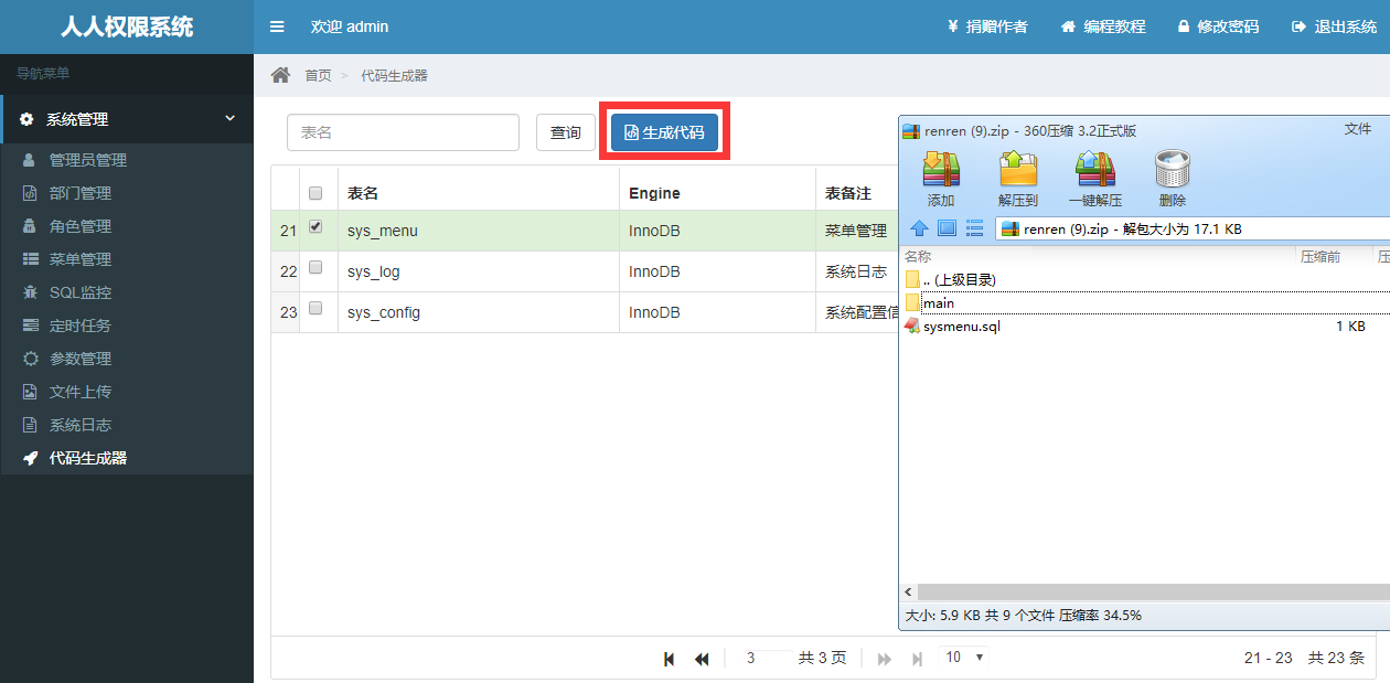 - 提供了代码生成器,只需编写30%左右代码,其余的代码交给系统自动生成,可快速完成开发任务