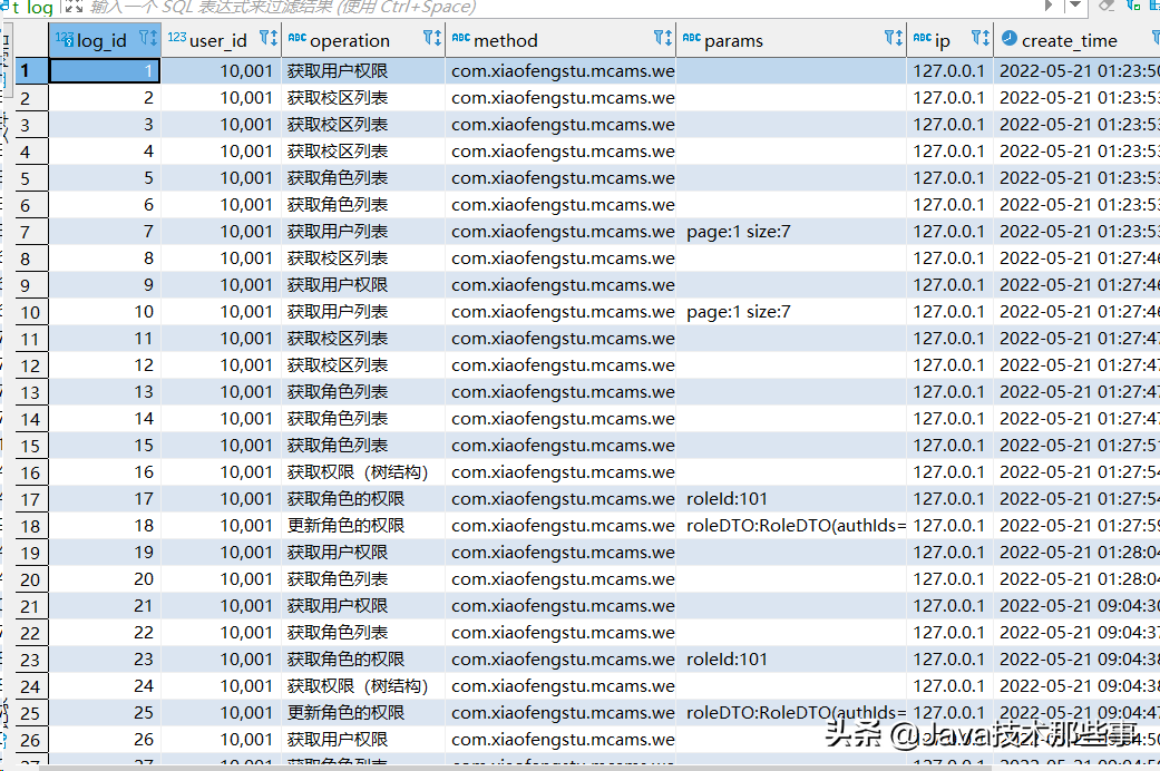 因为我使用的是 Mybatis-plus,所以 logService.save(log);是 mybatis-plus 原生的 save operation