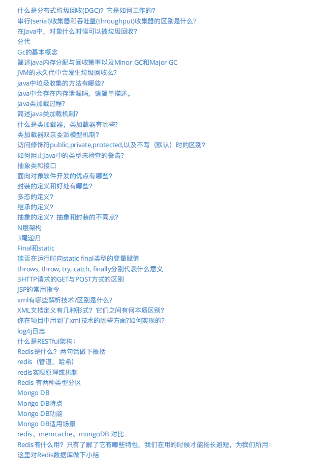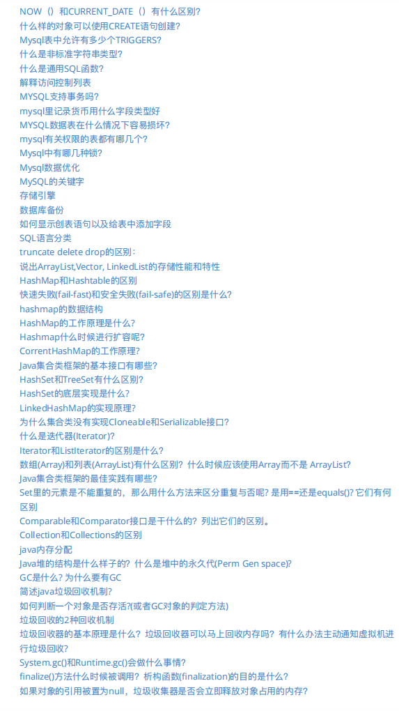 注意:所有面试题全部都是有答案的,没有办法为大家全部罗列出来,所以需要免费获取近期腾讯+阿里+百度大厂面试题的朋友,关注公众号:JavaAC,免费获取
