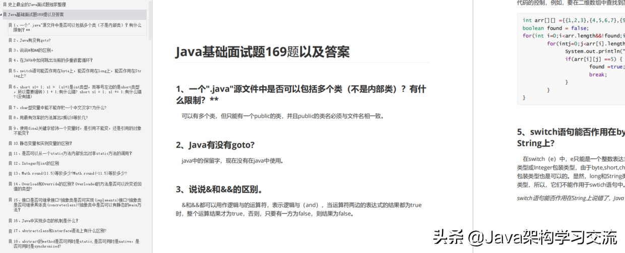 为了能让大家有更好的面试资料去面试大厂的技术岗位,花费了2个多月的时间,把市面上的所有的Java面试题,做了一个归纳总结,整理了快200多页,够大家刷题好久了!