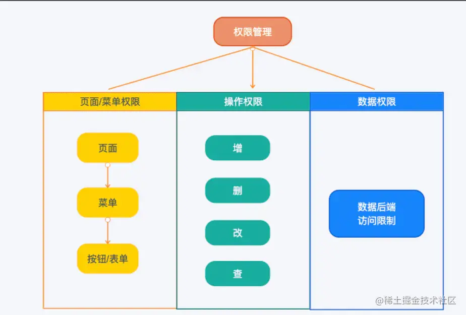 权限管理一般从三个方面来做限制。页面/菜单权限,操作权限,数据权限。