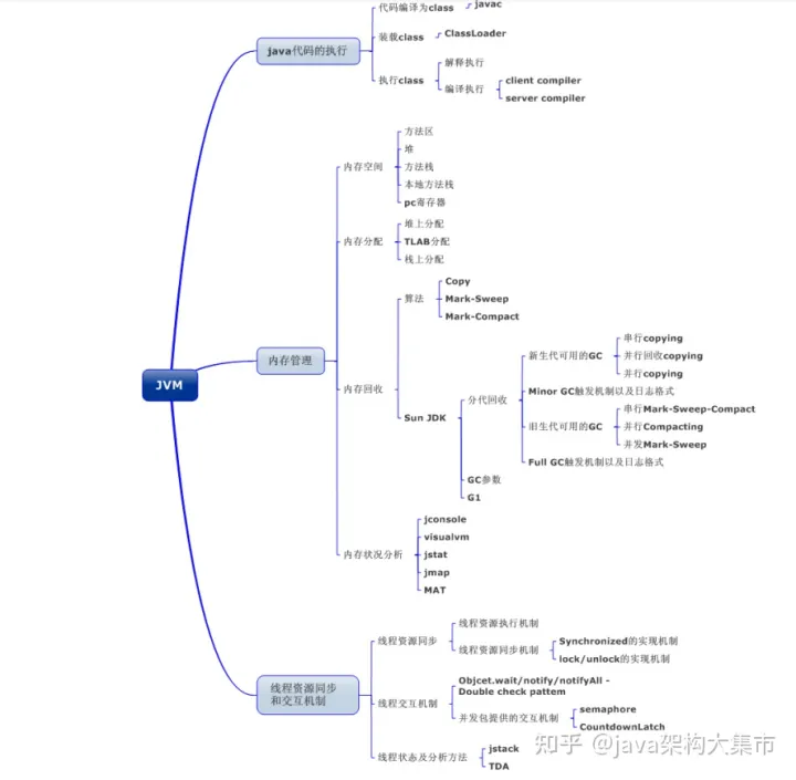 详细介绍了JVM有关于线程、内存模型、JVM运行时内存、垃圾回收与算法、Java中四种引用类型、GC 分代收集算法 VS 分区收集算法、GC 垃圾收集器、JAVA IO/NIO 、JVM 类加载机制的各大知识点。