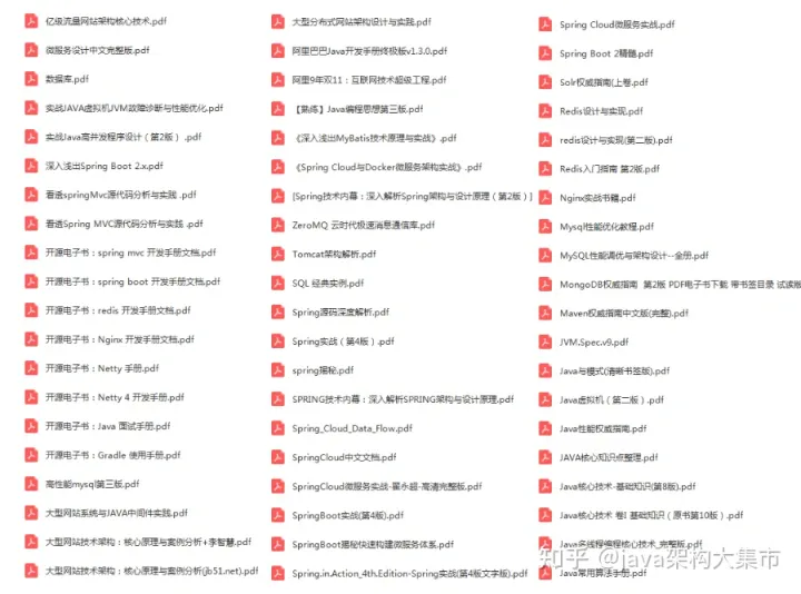 这套题库里面中包含了以下很多个模块:并发编程,多线程,集合框架,设计模式,数据库,性能优化,RabbitMQ消息中间件,ActiveMQ消息中间件,Dubbo,JVM,Kafka,MongoDB,MyBatis,MySQL,Netty,Nginx,Redis,Tomcat,Zookeeper,Spring,SpringBoot,SpringCloud,SpringMVC,.......
