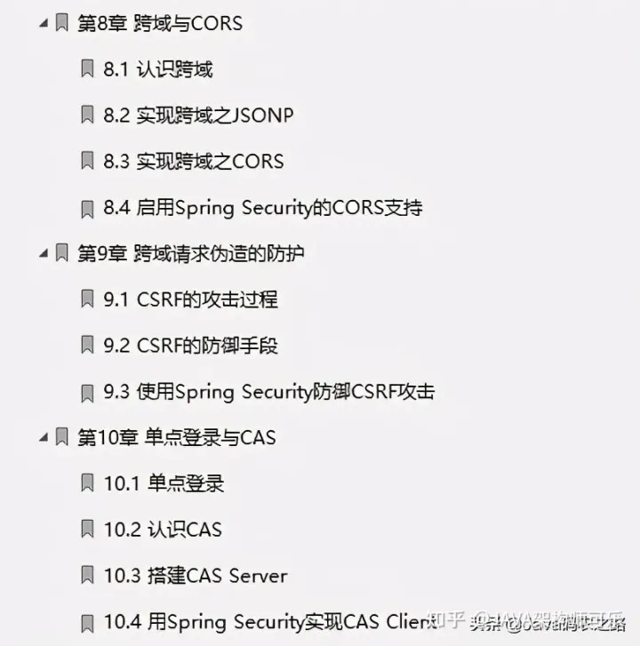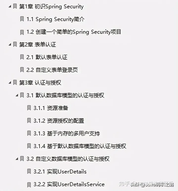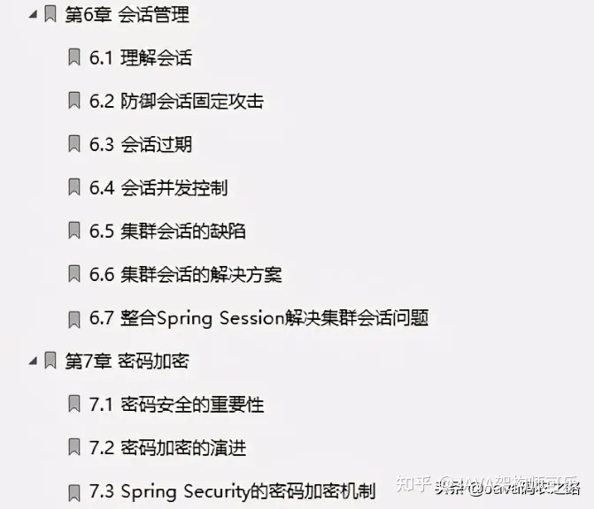 而上面这份文档基于以上问题,整理出了一套由浅入深的学习路径,不仅可以带你掌握 Spring Security 框架的全局,还从实战角度出发,帮助你高效掌握基于 Spring Security 框架的系统安全性设计方法和开发技巧。