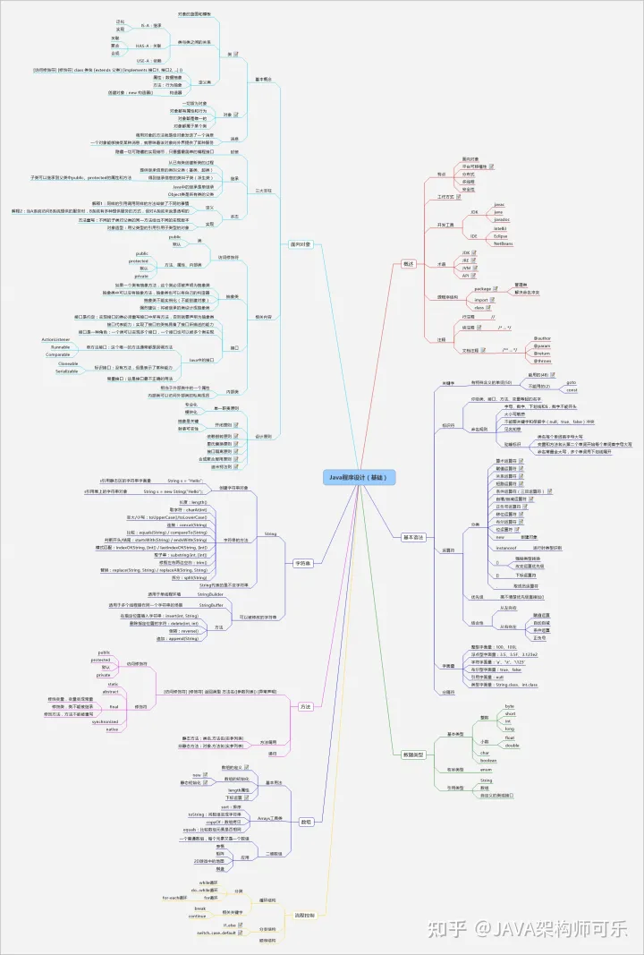 首先要绘制或者找一张JAVA学习的思维导图,这才能系统的去学习,这里分享一下我这些年工作整理的学习思维导图: