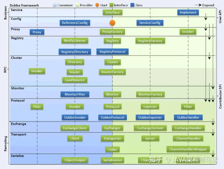 Dubbo是Alibaba开源的分布式服务框架,它最大的特点是按照分层的方式来架构,使用这种方式可以使各个层之间解耦合(或者最大限度地松耦合)。