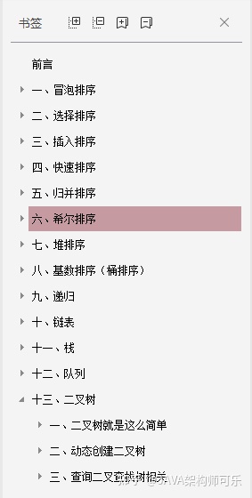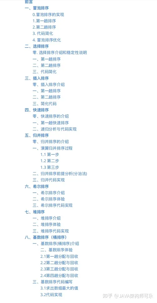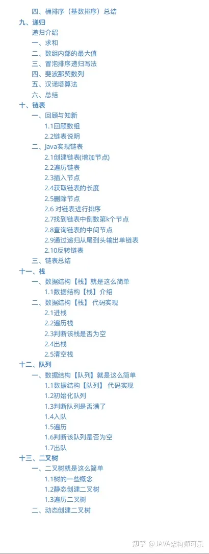 不扯远了,如果还在上大学的同学可以先以排序和各种的基本数据结构开始入门。我花了一个星期将八大基础排序和链表/二叉树/栈/队列制作成一份精美的PDF。