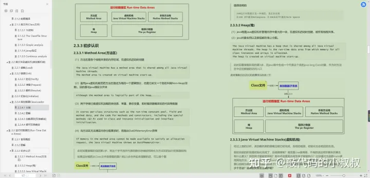 JVM 是小白 Java 程序员成长路上的一道坎,学习JVM之前,只需要知道代码编译成 Class,虚拟机加载 Class 运行就可以了,学习 JVM 之后,可以深入理解代码从编译到加载的过程、内存中对象的创建与垃圾回收、日常开发中快速定位性能问题等,当然也是面试不可缺少的加分项。这份JVM笔记非常适合面试及学习!