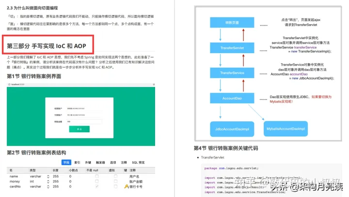 通过用【银行转账】的案例,分析该案例在代码层次中的问题,用已有知识解决这些问题,整个过程带你一步步分析并手写实现IoC 和 AOP,自己分析过的才是自己的知识!