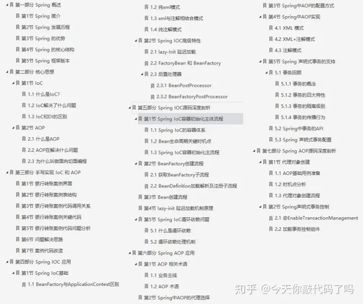 Spring源码分析笔记手册内容,共七个部分