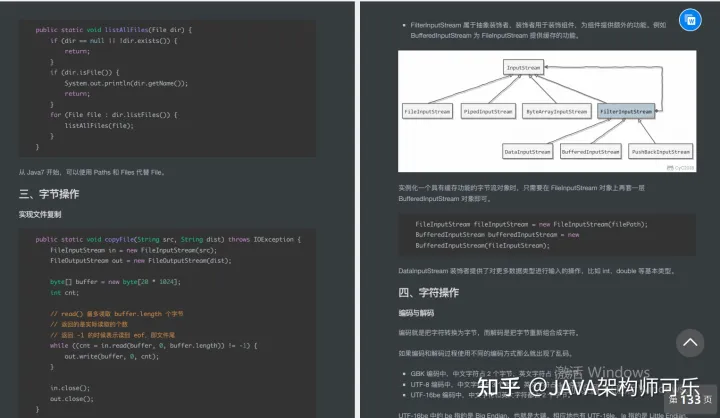 此章节分为6个小节包含概览,磁盘操作,字节操作,字符操作,对象操作,⽹络操作,NIO