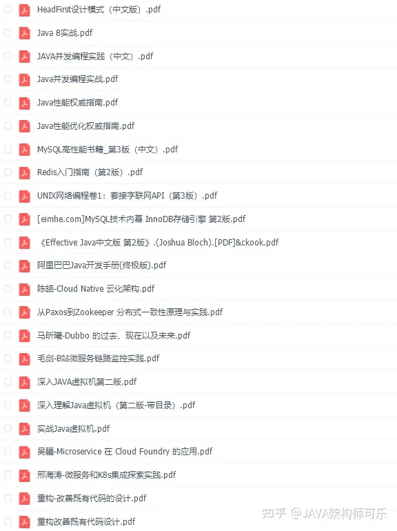 这套题库里面中包含了以下很多个模块(都有单独的PDF文档):并发编程,多线程,集合框架,设计模式,数据库,性能优化,RabbitMQ消息中间件,ActiveMQ消息中间件,Dubbo,JVM,Kafka,MongoDB,MyBatis,MySQL,Netty,Nginx,Redis,Tomcat,Zookeeper,Spring,SpringBoot,SpringCloud,SpringMVC,.......