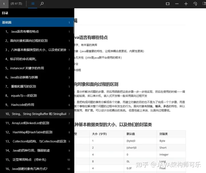 本文是为了帮大家快速回顾了Java中知识点,这套面试手册涵盖了诸多Java技术栈的面试题和答案,相信可以帮助大家在最短的时间内用作面试复习,能达到事半功倍效果。