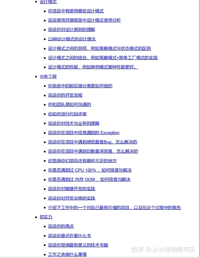 本文是一位拥有两年工作经验的程序员的跳槽心得,分享了他在外包公司和SAAS平台公司的经历,以及如何准备跳槽到大公司的过程。文章提到了大公司面试通常侧重基础和项目经验,而小公司更注重实际项目经验。同时,列举了大量的Java技术面试题,涵盖了Java基础、多线程、IO、集合、设计模式、JVM、数据库、框架等相关知识,并提及了项目经验面试中的高并发处理、会话同步、负载均衡等实际问题。