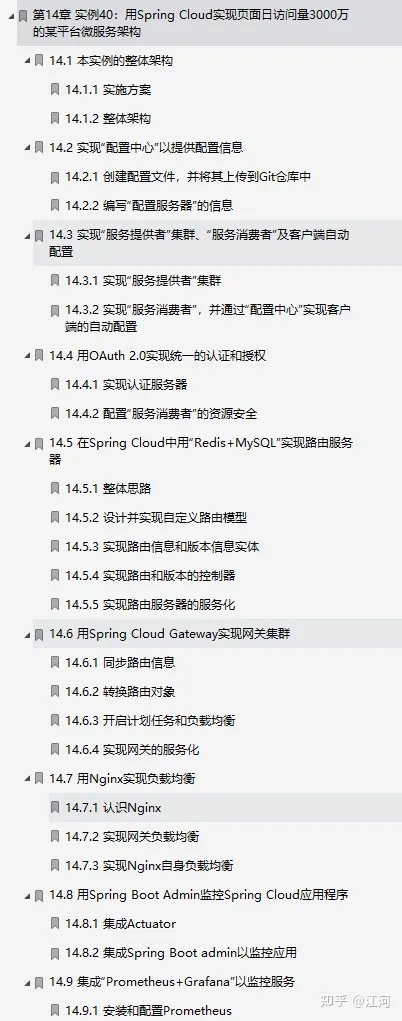主要包括了14章的内容(实例:用Spring Cloud实现页面日访问量3000万的某平台微服务架构)
