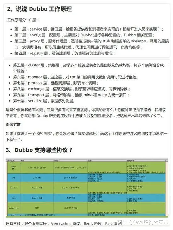 含:Dubbo基础,架构设计,集群,配置,通信协议,SPI等