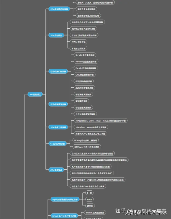 就一个JVM就能梳理出这么多知识点,从而可以看出总结自己的复习路线是一个多么重要的事情,这里只是展示我总结的一部分,整个路线包括源码框架,并发专题,JVM性能调优,mysql,分布式,微服务等等。我都总结出了每一小步的复习路线
