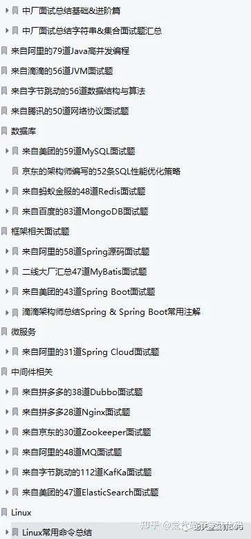 本篇只是为大家截图了部分的面试题内容,因为总共的题目数量已经超过了四位数,在这里没有办法为大家全部详细地截图出来,