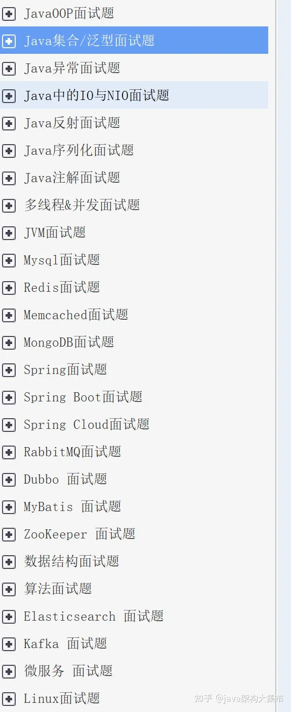 先给大家看一下内容,包含了java基础,多线程,Linux,kafka,算法,数据结构,微服务,zookeeper,mybatis,spring,mysql,redis,JVM,io/nio等等面试题详解,下面直接个大家展示