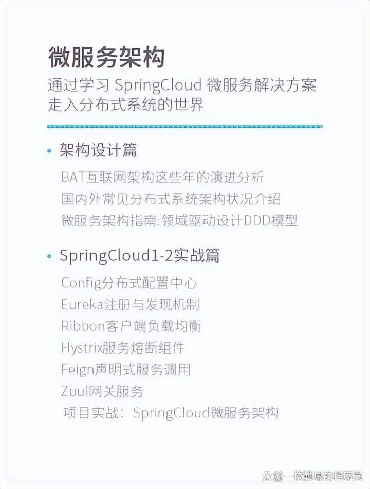 作为Java工程师的你,平时工作已经很忙了,到底该如何进阶,才能快速成长呢? 一朝成为Java工程师,就注定终身学习。 在小编的13年的Java工程师生涯中,这一点深有体会,而让我坚持学习的动力,主要源于以下三个方面: 1、 不断增值自己,拥有更多选择权 如果将技术比做一棵树,每学会一门语言,就点亮树上一个果实,你会得越多,技术树的果实就越多,价值就越大。当技术树的果实积累到一定程度,你就能纵向往高阶技术方向晋级,职业发展之路更上一层楼。 2、 互联网没有舒适圈,止步不前便是退步 计算机技术更新迭代快、新技术层出不穷,如果想要成为一个优秀的Java工程师,就要做好随时学习的准备,并持之以恒,这样才能跟上互联网日新月异的发展节奏。 3、 学习是面对竞争、度过中年危机的最好方法 Java工程师是高薪职业,近年来互联网的高速发展下,更是一度成为抢手的热门职业,以至于投身到这个职业的人越来越多,千军万马过独木桥,想要不掉队,唯有努力学习,成为互联网公司高薪争抢的中高端Java工程师,才能不惧寒冬。 目前互联网寒冬让很多互联网人清醒了,众多大企裁员、招聘需求收缩,主要还是针对基础岗、温水煮青蛙给煮死的那波人,中高端Java工程师在市场上依然紧缺。 互联网公司主流技术选型 进阶高级Java、架构师必学6大主要技能,包括:数据结构和算法、Java高级特性、源码分析、数据库、Java框架与必备工具、系统架构设计等,希望能真正帮助到想要从程序员进阶为高级Java、架构师之路的朋友。 1、分布式架构 随着业务体量及重要性的增大,单体架构模式无法对应大型应用场景,系统也决不允许存在单点故障导致整体不可用,所以只有垂直或水平拆分业务系统,形成一个分布式的架构来消除单点故障,从而提高整个系统的可用性。 包括:分布式Session、分布式缓存、数据库、一致性、负载均衡、消息队列(RabbitMQ、ZeroMQ、Kafka)等