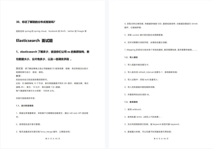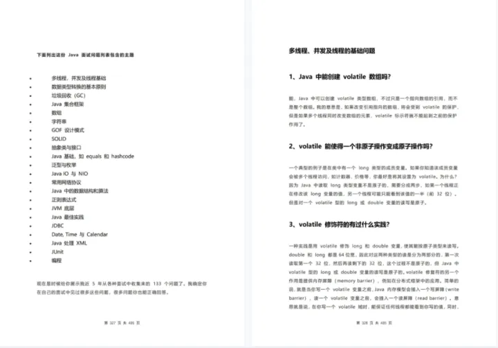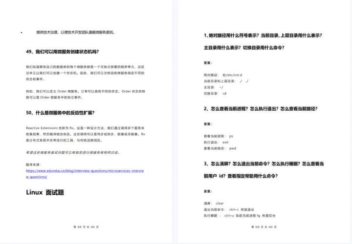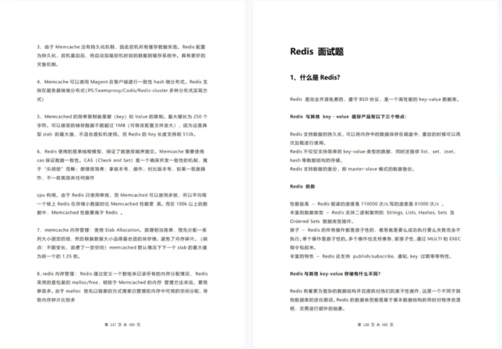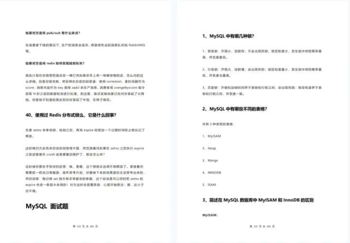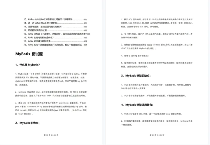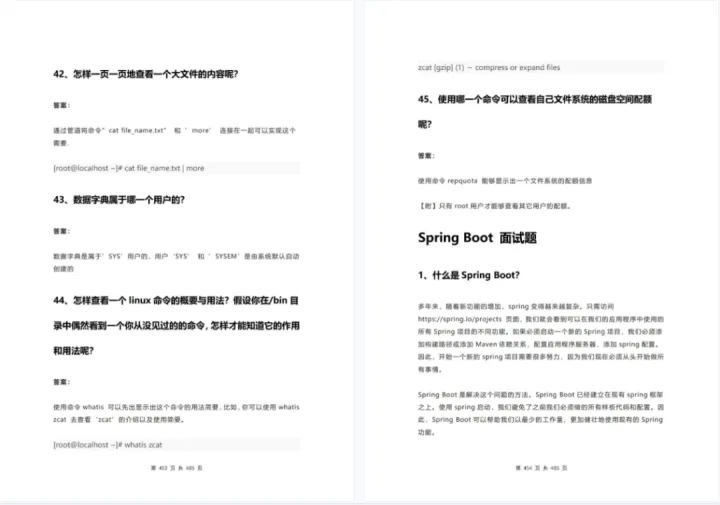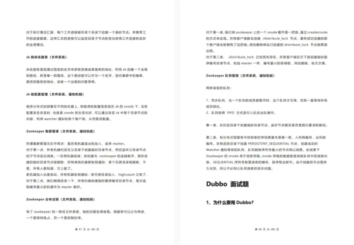 这些面试题全部在下面这个总共485页的PDF里面,内容涵盖:Java、MyBatis、ZooKeeper、Dubbo、Elasticsearch、Memcached、Redis、MySQL、Spring、Spring Boot、Spring Cloud、RabbitMQ、Kafka、Linux等技术栈,每个技术以及在PDF中的对应位置都截图在下文,大家可以先进行查看。