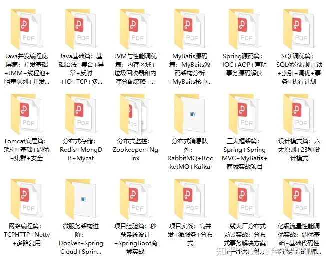 更多不做展示,还有包括Redis,RabbitMQ,分布式,微服务,Kafka,基础,netty等面试解析文档都整理了!