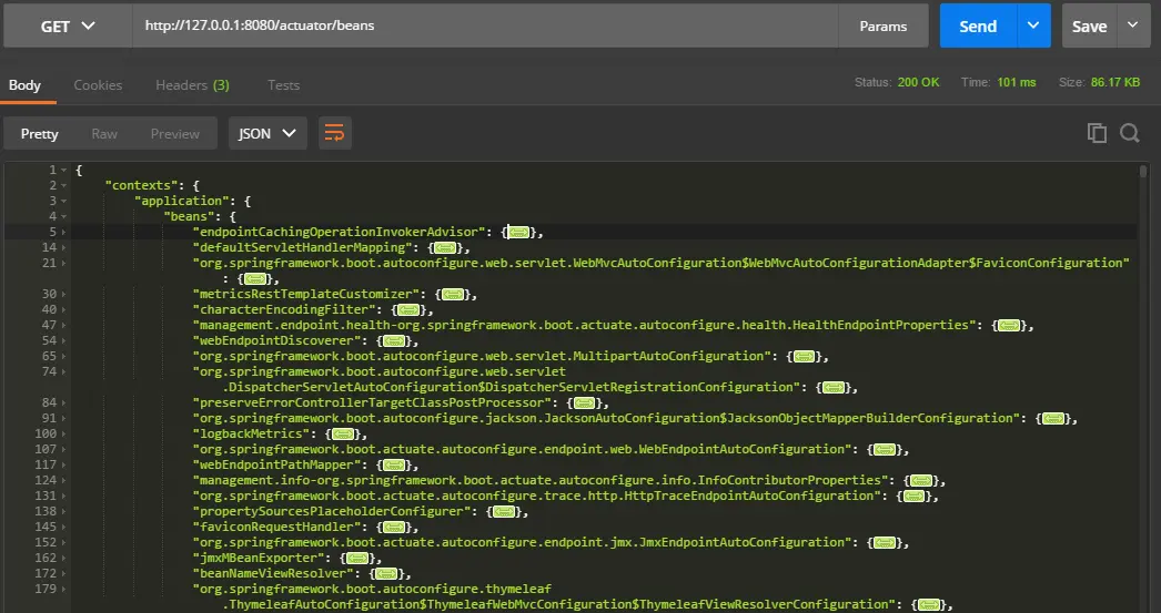 做好了如上的配置,接下来我们只需要访问对应的 Endpoint 就可以啦,/actuator/[Endpoint ID](http://127.0.0.1:8080/actuator/health)。