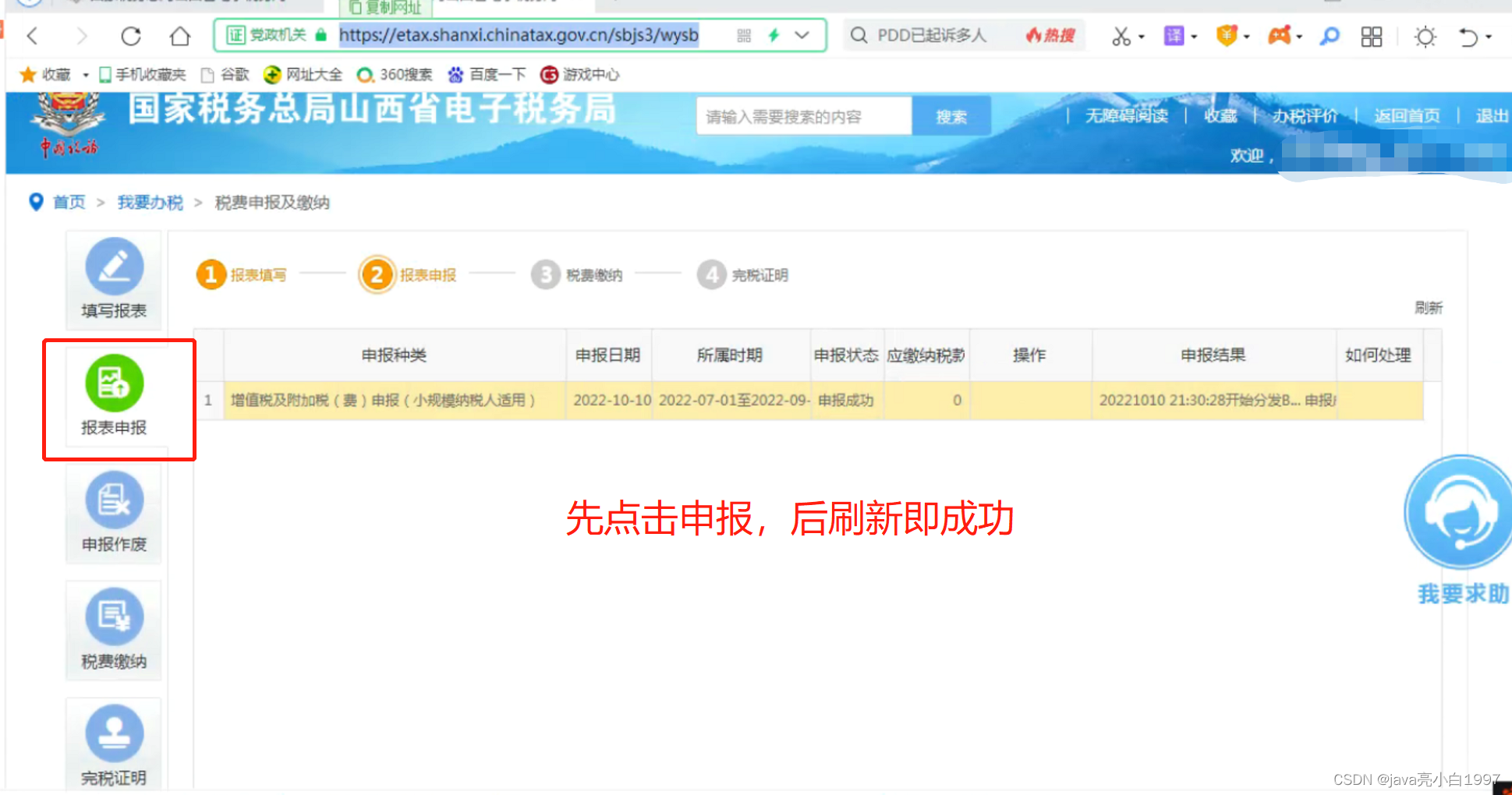 第一步进行数据更新、第二步点击“我要办税”->税费申报及缴纳