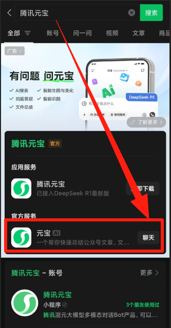 - 输入【腾讯元宝】→ 点击添加