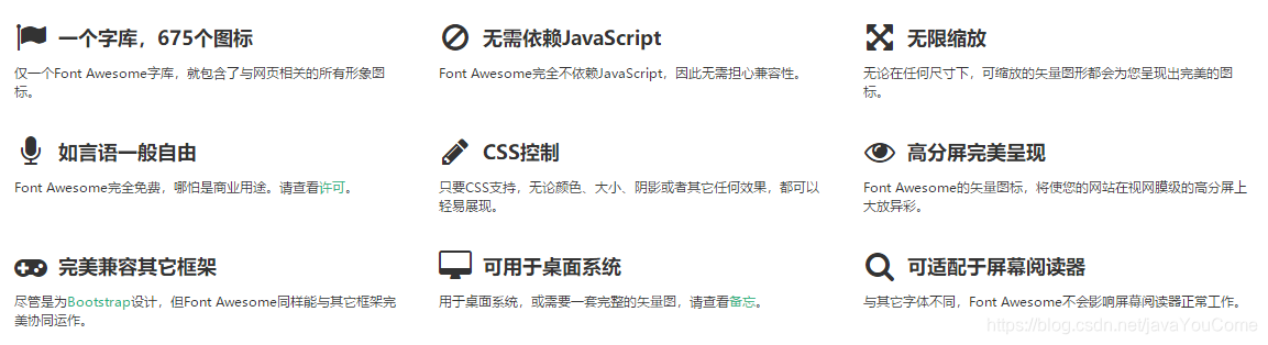 Font Awesome官网及使用文档:http://fontawesome.dashgame.com/
