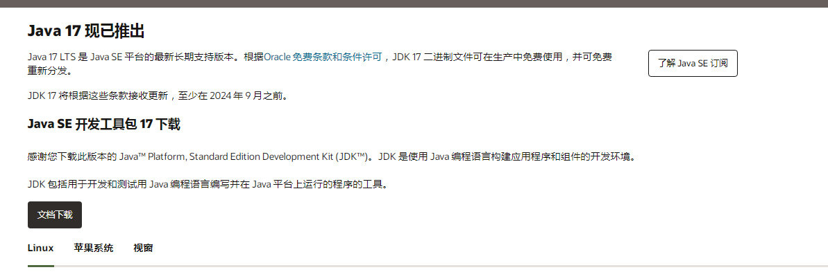 在安装 JDK 之前,首先要到 Oracle 网站获取 JDK 安装包。JDK 安装包被集成在 Java SE 中,因此下载 Java SE 即可,步骤如下。