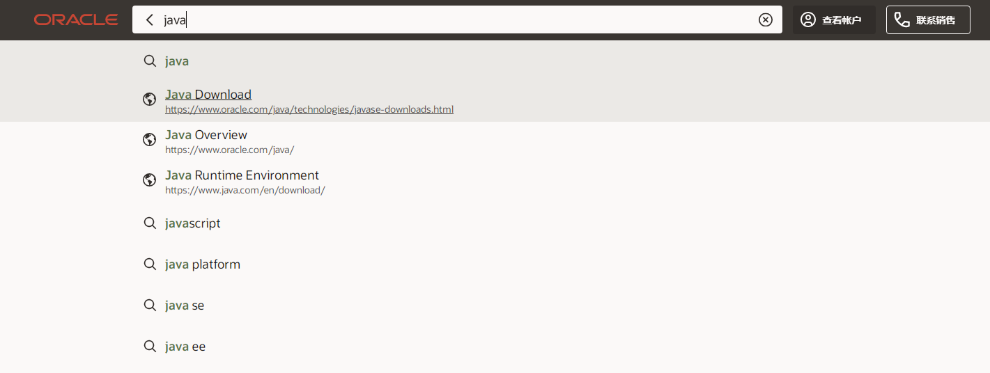 1、 在浏览器中输入 http://www.oracle.com,打开 Oracle 公司的官方网站。在首页直接搜java,第一个就是Java Download,点击