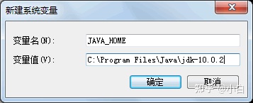 3、此时会弹出“新建系统变量”对话框。在“变量名”文本框中输入 JAVA_HOME,在“变量值”文本框中输入 JDK 的安装路径,最后单击“确定”按钮,保存 JAVA_HOME 变量。