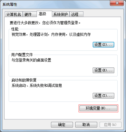 1、从桌面上右击“计算机”图标,从快捷菜单中选择“属性”命令,在打开的“系统属性”对话框中单击“环境变量”按钮。