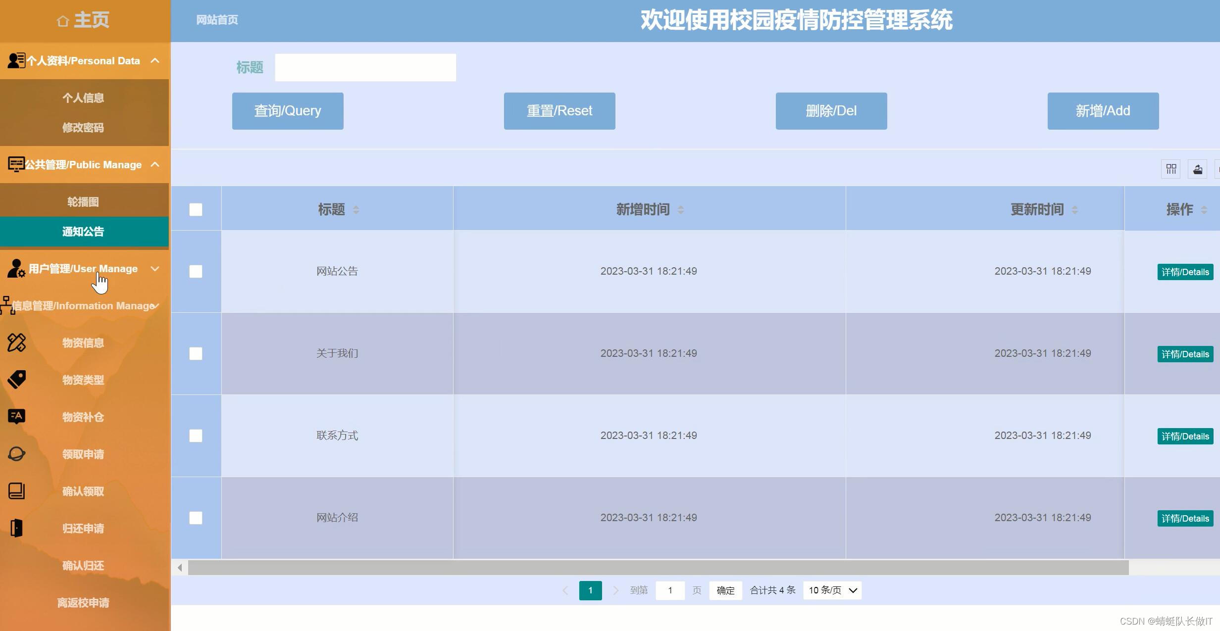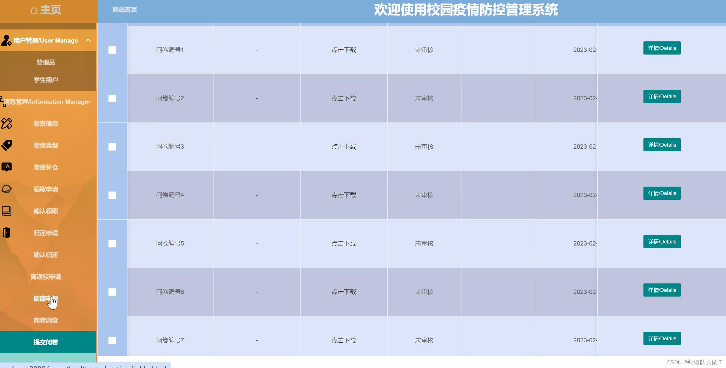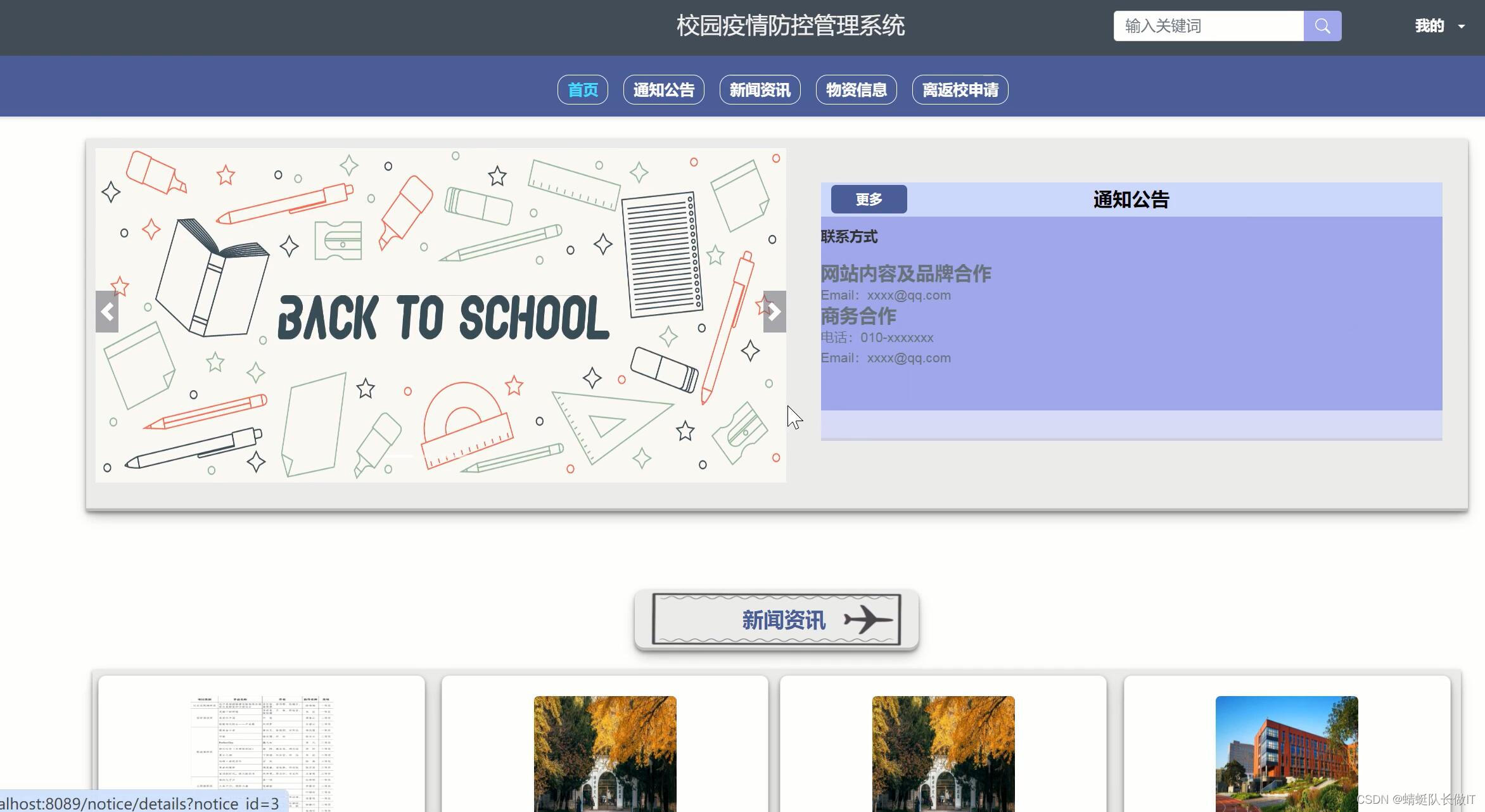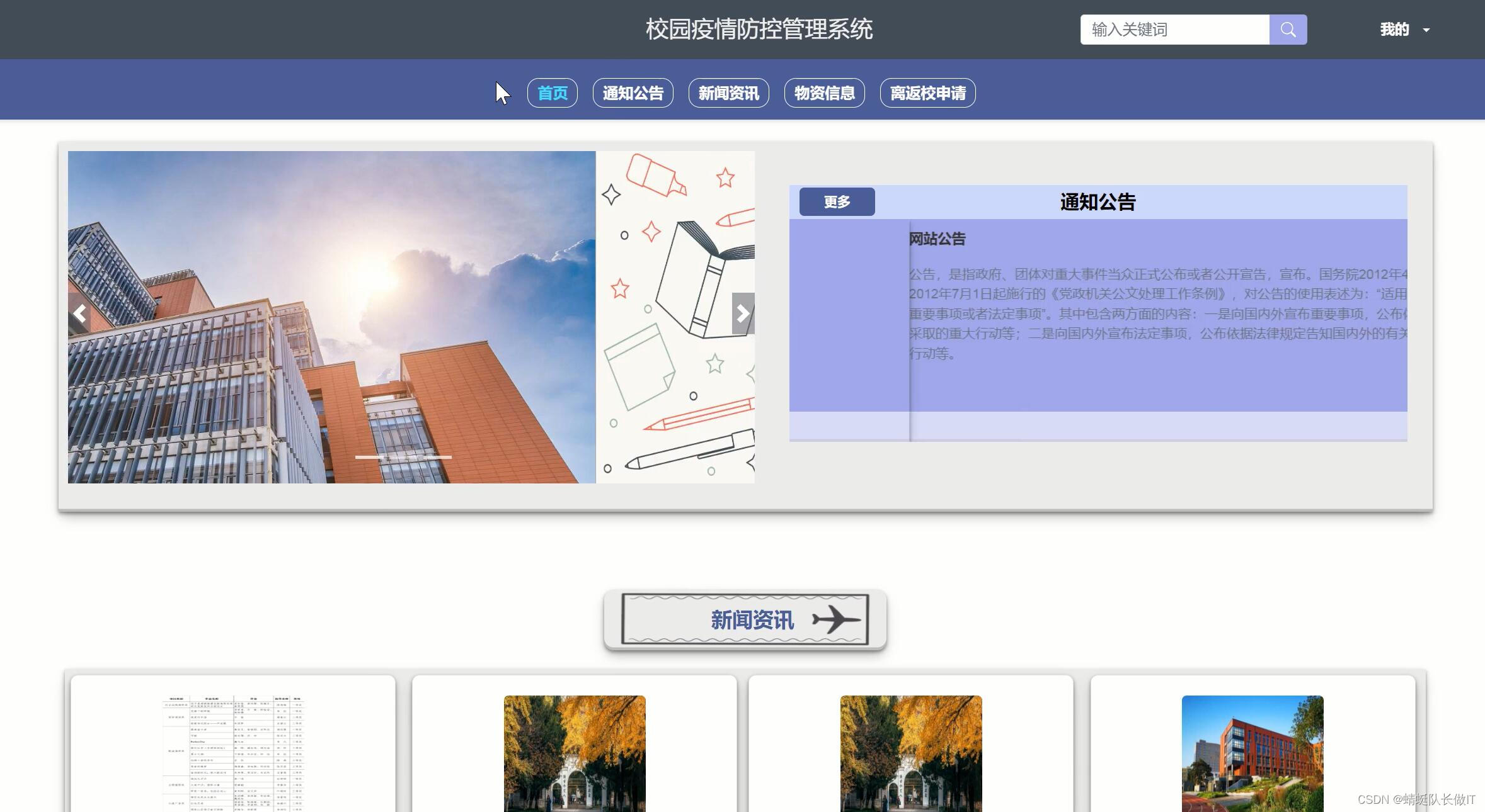本设计主要实现集人性化、高效率、便捷等优点于一身的校园疫情防控管理系统,
