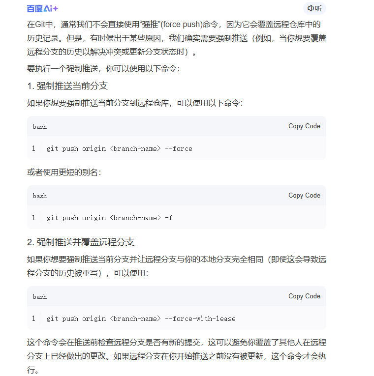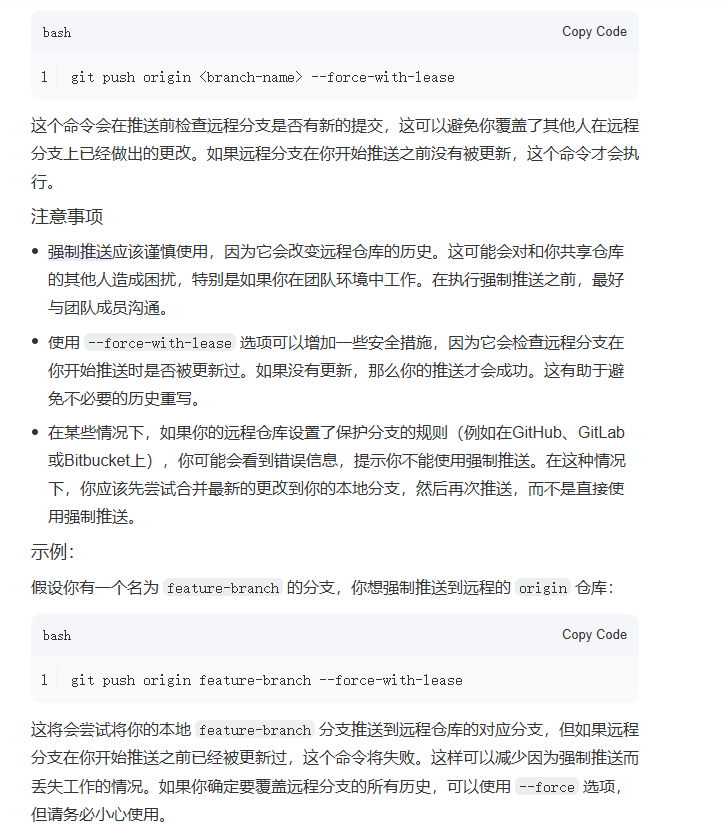 --force-with-lease:团队协作中,确保本地分支最新后再推送。