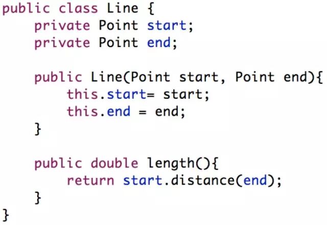 在类型Point中,属性x,y都是基本类型,但类的属性也可以是类,我们考虑一个表示线的类,它由两个点组成,有一个实例方法计算线的长度,代码如下: