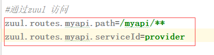 6.1 通过网关访问服务时把Eureka上服务提供者名字换成自定义的服务名,例如加myapi . 修改Application.properties 文件.