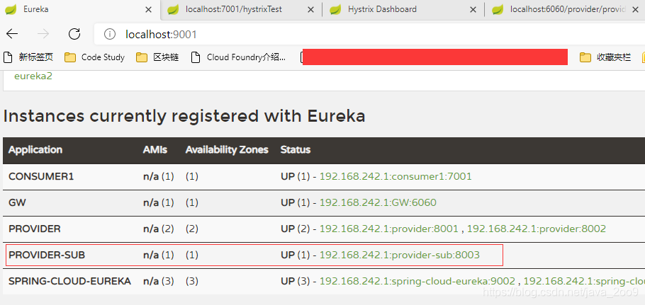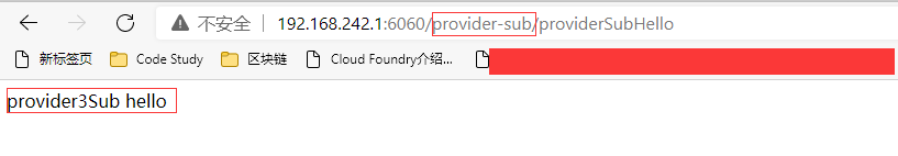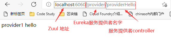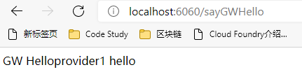 在浏览器中通过网关调用注册在Eureka 上的服务提供者. 请注意分析 地址 http://localhost:6060/provider/providerHello