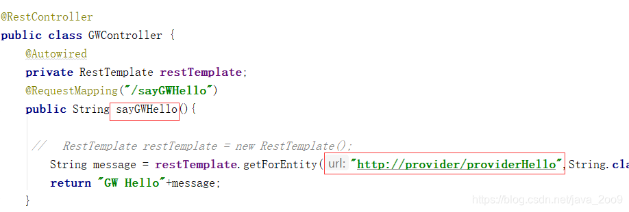 String message = restTemplate.getForEntity("http://provider/providerHello",String.class).getBody();