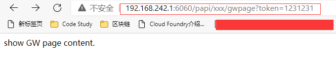 例如: http://192.168.242.1:6060/xxx/gwpage?token=1231231 ,可以显示 show GW page content. 此路径中会把xxx 替换成 /mlocal