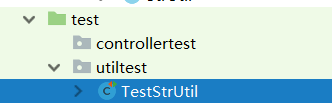 3.在main文件夹中创建一个test的文件夹,选中test文件夹右键标记为测试源码根,在刚刚创建的文件夹中再创建一个utiltest的包,在包中创建名为TestStrUtil的java类。如图所示: