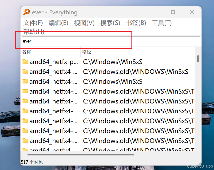 下载地址(网盘) 夸克网盘分享 介绍 Everything是voidtools开发的一款文件搜索工具,是一个运行于Windows系统,基于文件、文件夹名称的快速搜索引擎,它在搜索之前会把所用的文件和文件夹都列出来,与Windows自带的搜索系统不一样,所以我们称之为“Everything” 安装 无脑安装,直接根据提示选择合适的目录安装即可 使用 直接搜索框输入文件大致的名称即可,秒出结果!