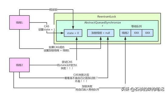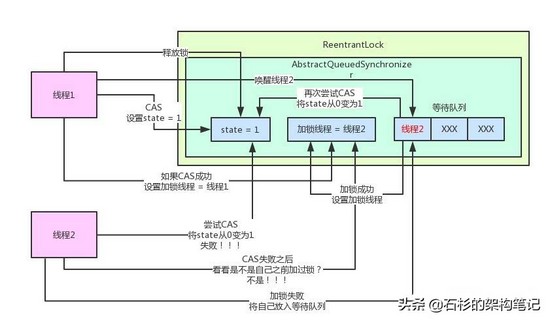 所以大家可以看到,AQS是如此的核心!AQS内部还有一个等待队列,专门放那些加锁失败的线程!