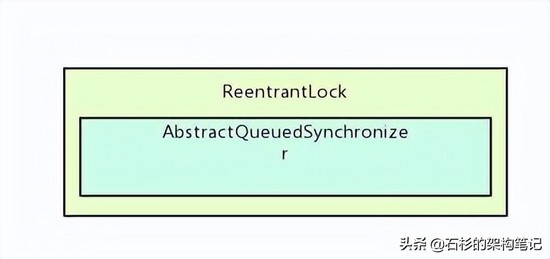 那么AQS的全称是什么呢?AbstractQueuedSynchronizer,抽象队列同步器。给大家画一个图先,看一下ReentrantLock和AQS之间的关系。