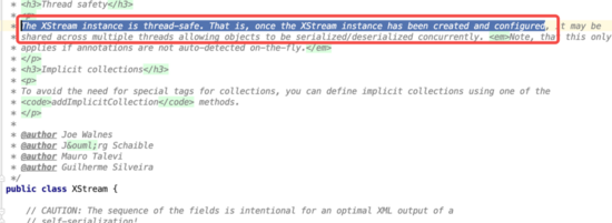 官方已经说了,XStream类本身就是线程安全的,建议使用单例模式使用!