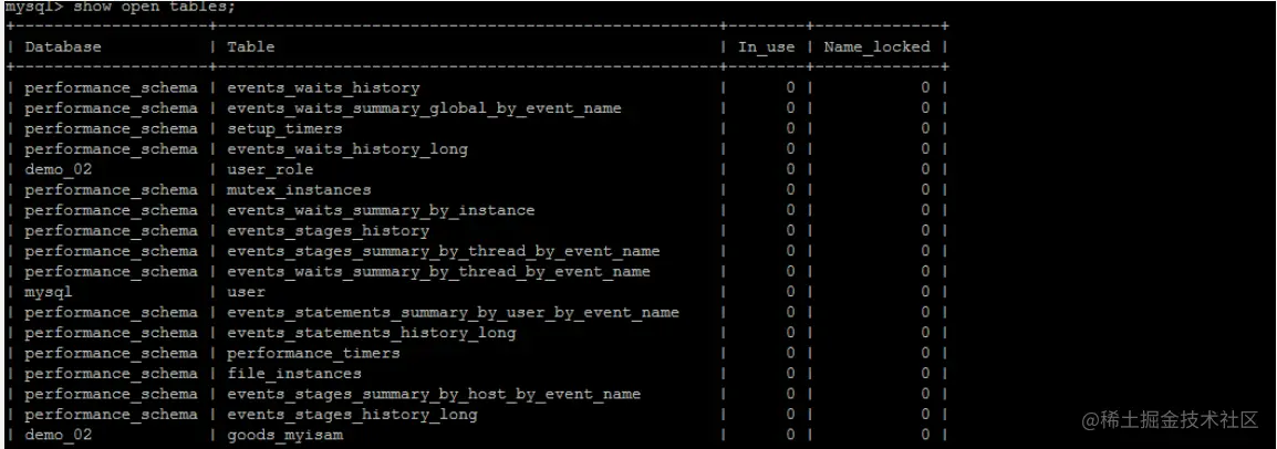 In_user : 表当前被查询使用的次数。如果该数为零,则表是打开的,但是当前没有被使用。