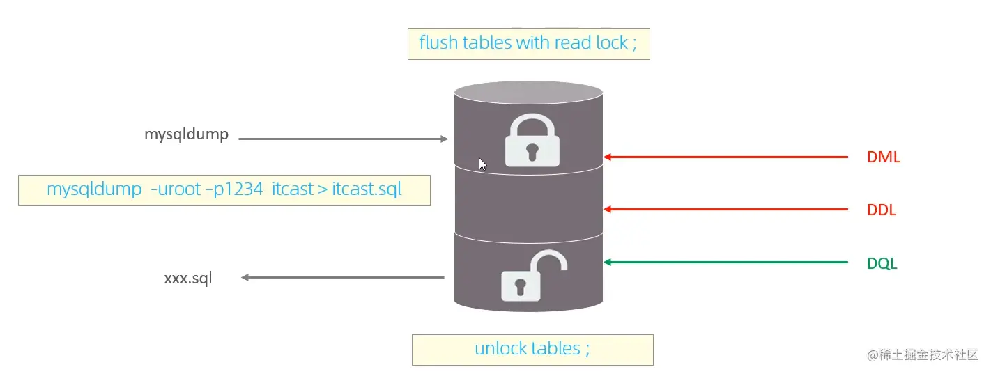 而对于写操作:自己还在读,就别想着去做写操作了!而对于其他客户端,如果对该表写操作。肯定会影响到当前客户端的读取结果,所以其他客户端不能对该表进行写操作