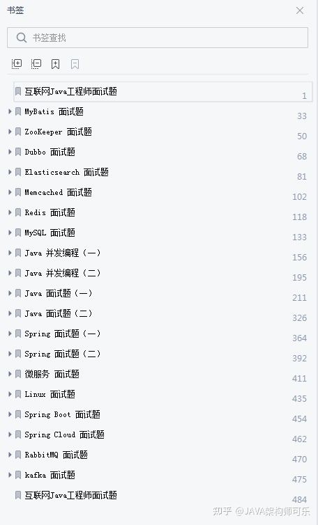 这套互联网Java工程师面试题包括了:MyBatis、ZK、Dubbo、EL、Redis、MySQL、并发编程、Java面试、Spring、微服务、Linux、Springboot、SpringCloud、MQ、Kafka面试专题(共485页,32W字)